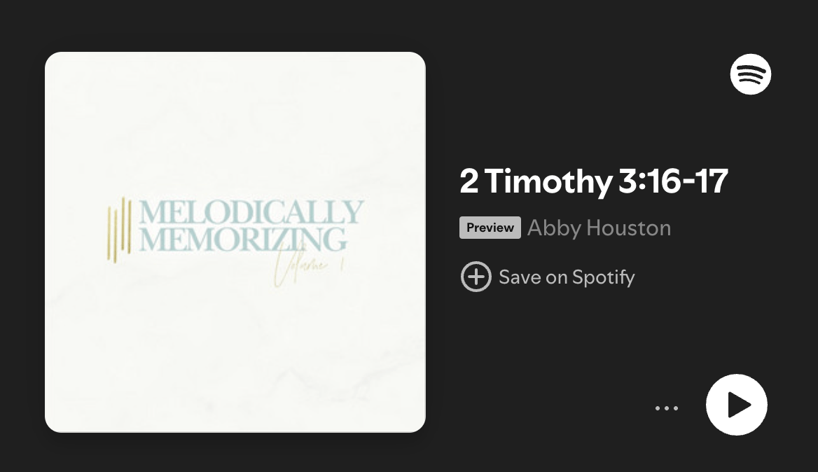 This week, let’s listen to Abby Houston’s rendition of 2 Timothy 3:16-17 together!
