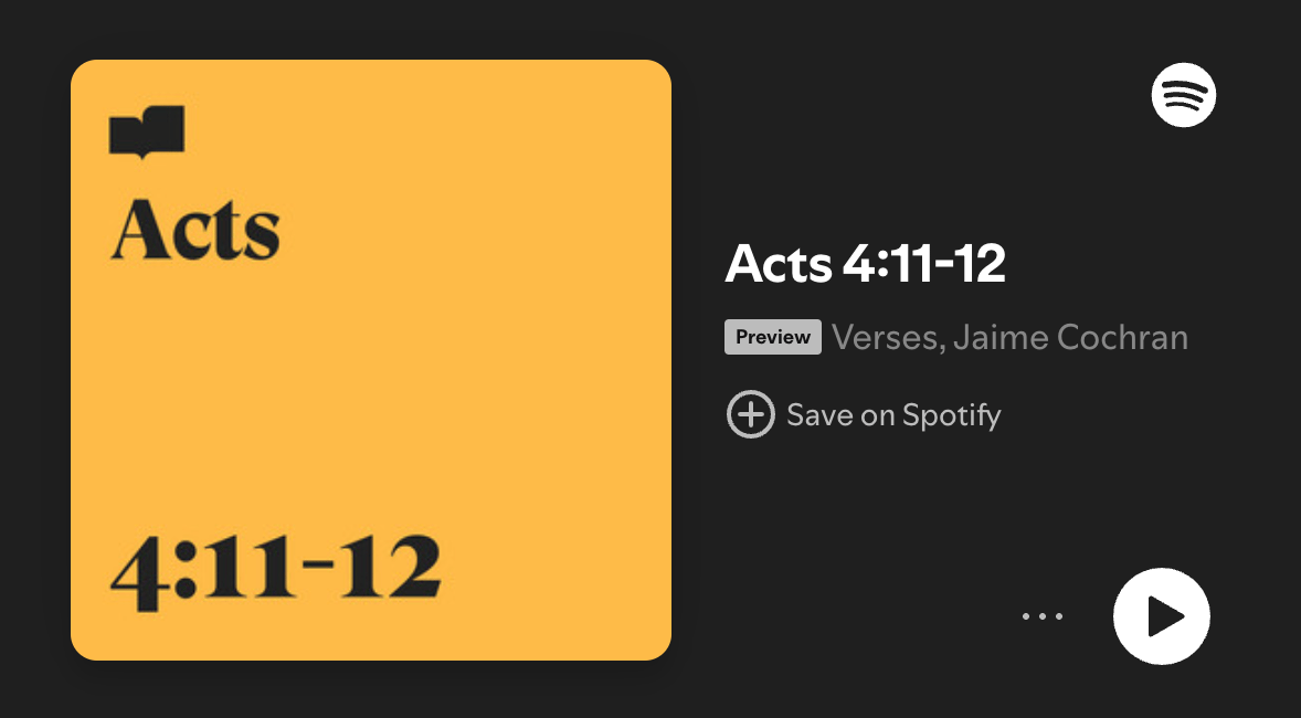 Acts 4:11-12 by the Verses Project (Spotify | Apple Music | Youtube)