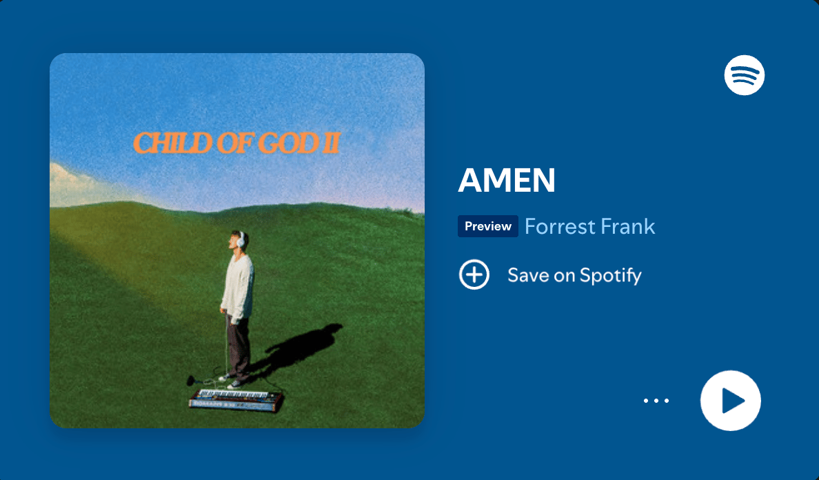 Enjoy this song by one of the most played artists in our household right now — Forrest Frank. His music always glorifies God and our kids are big fans!